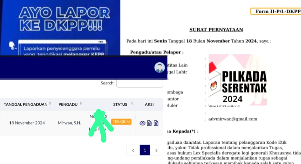 Bahwa kami bersama team telah melengkapi berkas-berkas sambil melakukan kordinasi ke anggota DKPP dipusat dan sesuai arahan petunjuk kita lengkapi berkas dan telah sukses mengupload berkas pengaduan kami dan telah kami adukan Ketua dan dua anggota Bawaslu Kabupaten Takalar”, kuncinya sambil menyatakan biar kita serahkan kepada hakim DKPP menilainya.