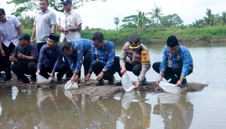TAKALAR || lmnnews.id-Kabupaten Takalar terkenal dengan berbagai potensi baik dibidang Pertanian, Peternakan maupun Perikanan. Dan untuk memperkuat Ketahanan Pangan, Polres Takalar yang diwakili Wakapolres Kompol Alauddin, S.Sos., M.Si bersama Forkopimda Takalar dan Dinas terkait melakukan penebaran benih ikan bandeng.