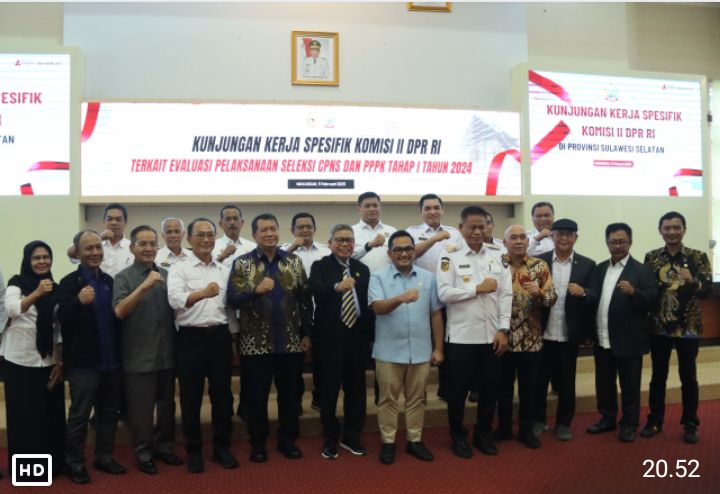 Kegiatan yang berlangsung di Ruang Rapat Pimpinan Gedung A Kantor Gubernur Sulawesi Selatan dihadiri Wakil Menteri Menpan RB, Ketua komisi II DPR RI bersama anggota, Para Walikota/Bupati se-Sulsel, para Kepala BKPSDM Kota/Kab Se-Sulsel dan Kepala OPD Sulsel, Rabu 5 Februari 2025.