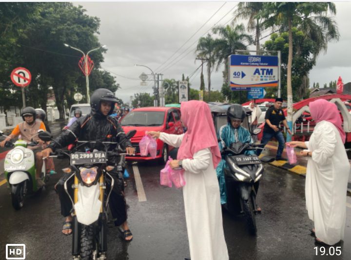 Setelah menyerahkan paket sembako kepada kaum dhuafa, kegiatan dilanjutkan dengan pembagian takjil kepada pengendara yang melintas di Jalan Jenderal Sudirman, tepatnya di depan Pos Kamseltibcar Lantas Polres Takalar. Kegiatan ini disambut antusias oleh masyarakat, terutama mereka yang sedang dalam perjalanan untuk berbuka puasa.