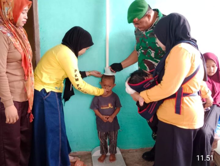 TAKALAR || lmnnews.id– Guna menekan bertambahnya angka Stunting Balita yang disebabkan oleh kurangnya asupan gizi, Babinsa Koramil 1426-01/Polut Kodim 1426/Takalar Serka Mustari melaksanakan kegiatan pendampingan penimbangan berat badan dan pengukuran tinggi badan Balita bertempat di Posyandu Kelurahan Palleko, Kecamatan Polongbangkeng Utara Kabupaten Takalar. Selasa, (18/03/2025).