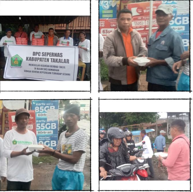TAKALAR || lmnnews.id-18 Maret 2025 – Dalam rangka menyambut bulan suci Ramadhan, Serikat Pers Reformasi Nasional (SEPERNAS) Dewan Pimpinan Cabang (DPC) Takalar mengadakan kegiatan berbagi takjil kepada masyarakat yang melintas di jalan Poros Diponegoro, Kelurahan Kalabbirang, Kecamatan Pattalassang, Kabupaten Takalar.