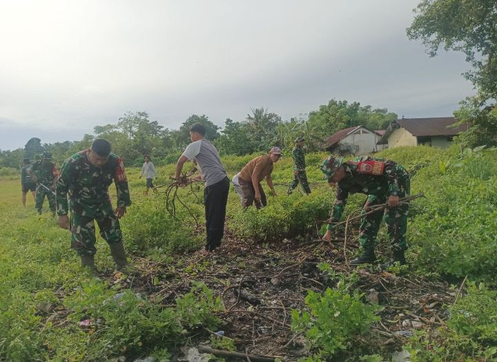 TAKALAR || lmnnews.id– Persiapkan tempat untuk menyambut hari raya idul Fitri 1446/H tahun 2025, Personel Koramil 1426-04/Galesong Kodim 1426/Takalar, bersama warga kerja bakti bersihkan lapangan di Desa Palalakkang Kecamatan Galesong Kabupaten Takalar. Rabu, 26/03/2025.