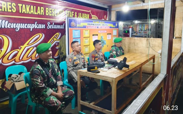 TAKALAR || lmnnews.id-Sinergitas dan kekompakan TNI-Polri bersama Instansi terkait terlihat di Pos pengamanan hari raya Idul Fitri 1446 H/2025 untuk menjaga Kamtibmas dan menciptakan suasana aman, nyaman bagi pemudik pasca Lebaran di Kabupaten Takalar, Rabu (02/04/2025).