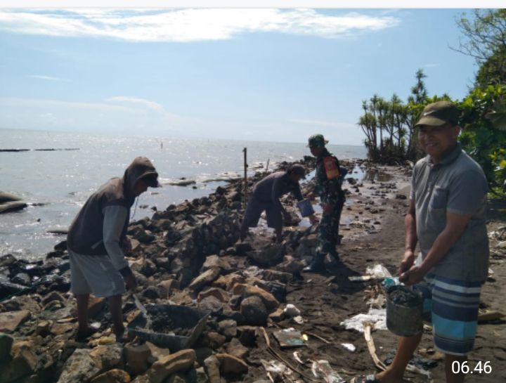 TAKALAR || lmnnews.id– Bantu meringankan pekerjaan warga, Babinsa Koramil 1426-06/Mapsu, Sertu Muhammad Arif melaksanakan kerja bakti membantu warga binaan membuat pondasi dari batu untuk untuk menahan tanah agar tidak terkikis oleh ombak bertempat di pinggir Pantai, Desa Laguruda Kecamatan Sanrobone, Kabupaten Takalar, Senin, (21/04/2025).