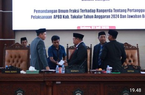 TAKALAR || lmnnews.id-Bertempat di Ruang Sidang Paripurna DPRD Kab. Takalar, Bupati Takalar Ir. H. Mohammad Firdaus Daeng Manye,. MM menghadiri Rapat Paripurna dalam rangka Pemandangan Umum Fraksi terhadap Ranperda Pertanggungjawaban APBD Kab. Takalar TA 2024 serta Jawaban Bupati terhadap Pemandangan Umum Fraksi, Selasa (1/6/2025).