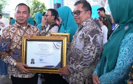 Penghargaan diserahkan langsung oleh Menteri Kependudukan dan Pembangunan Keluarga/BKKBN Dr. Wihaji, S.Ag,.M.Pd pada peringatan Hari Keluarga Nasional (HARGANAS) ke-32 Tahun 2025 di Tribun Utama Lapangan Karebosi Makassar, Minggu 27 Juli 2025.