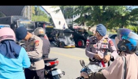 Aksi ini dilaksanakan pada Senin (4/8/2025). Sejumlah personel Brimob Polda Metro turun ke jalan sambil mengatur lalu lintas dan membagikan bendera kepada para pengendara.