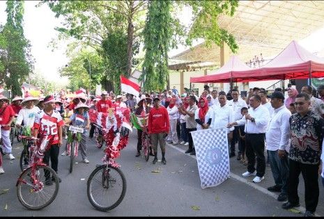 Dalam melepas pawai, Bupati menyampaikan momentum ini menggambarkan bagaimana kita menyambut Proklamasi Kemerdekaan Republik Indonesia dengan semarak dan bahagia.