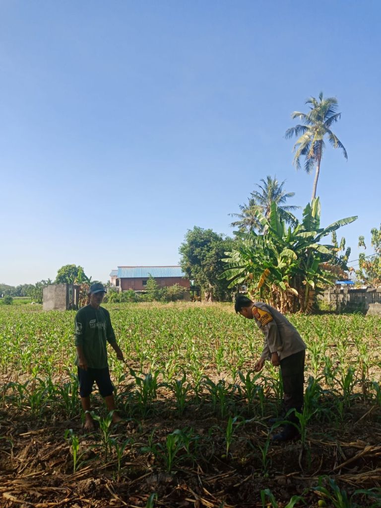 Dalam kegiatan tersebut, Bripka Rahman Jayadi melihat langsung kondisi pertumbuhan jagung yang ditanam secara mandiri oleh warga.