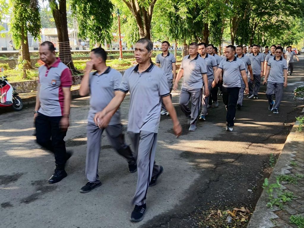 Rute jalan santai dimulai dari Mapolres, menyusuri sejumlah ruas jalan di kawasan pusat kota, lalu kembali ke titik awal.