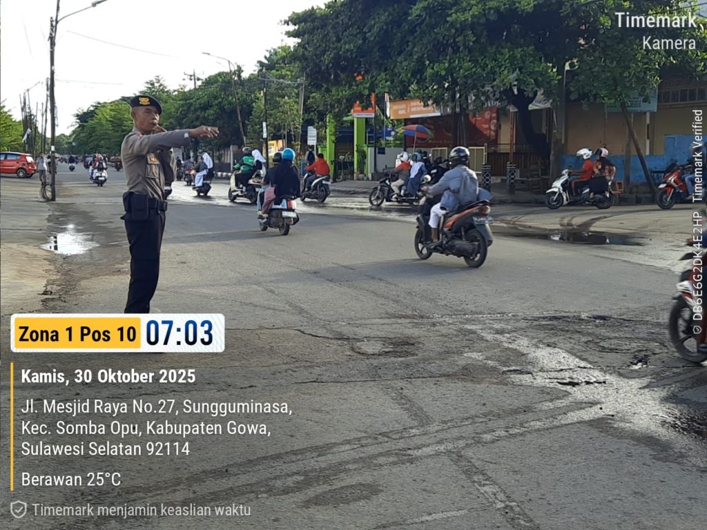 Dengan kehadiran polisi di lapangan, diharapkan situasi lalu lintas di Kabupaten Gowa tetap aman, tertib, dan terkendali setiap pagi.