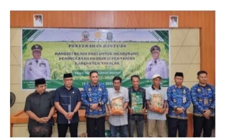 Bupati Takalar Ir. H. Mohammad Firdaus Daeng Manye melalui Wakil Bupati Dr. H. Hengky Yasin, S.Sos., MM menyerahkan total 163 ton benih padi kepada ratusan kelompok tani yang tersebar di seluruh wilayah kabupaten.