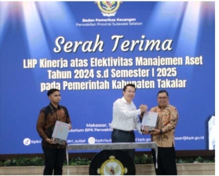 MAKASSAR || lmnnews.id-Bupati Takalar, Mohammad Firdaus Daeng Manye, resmi menerima Laporan Hasil Pemeriksaan (LHP) Kinerja atas Efektivitas Manajemen Aset Tahun 2024 hingga Semester I 2025 dari Badan Pemeriksa Keuangan (BPK) Perwakilan Provinsi Sulawesi Selatan. Penyerahan dokumen penting tersebut dilakukan langsung oleh Kepala Perwakilan BPK Sulawesi Selatan, Winner Franky Halomoan Manalu, di Auditorium BPK Perwakilan Sulsel, Jalan Andi Pangeran Pettarani, Kota Makassar, Senin (19/01/2026).